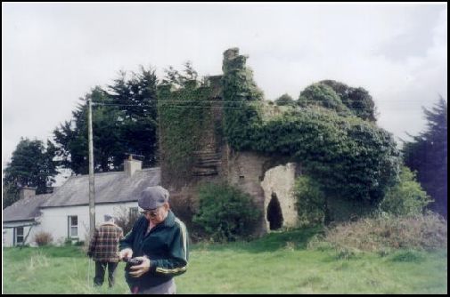 The ruins of a Ryan Castle (Cully Castle) situated in Northern Tipperary. The ruins are completely covered in ivy, but note the more modern cottage built on to the ruins, which was still occupied. The Castle was confiscated from the Ryan Family by Oliver Cromwell, and presented to one of his supporters, Col. Waller who renamed it as "Castle Waller". In the picture the ruins are being inspected by Ted Ryan (nearest to building) and his brother Bernie Ryan during a visit to Ireland in 1995.