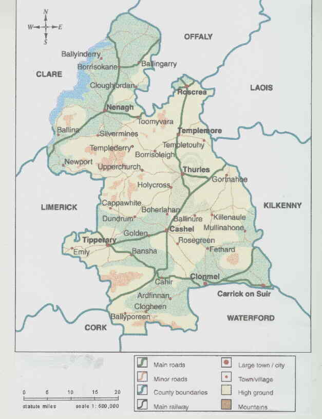 Being a Ryan, when one starts to think of Ireland, one’s mind naturally turns towards Tipperary, situated in the South/West of Ireland in the Province of Munster. Although the Ryan Family is represented in almost every County and city in Ireland, and way back in the dim and distant past the Ryans were more prevalent in the Province of Leinster, the Ryans many centuries ago appeared in the Province of Munster and quickly established themselves along the border between Limerick and Tipperary where they rapidly became the Family of influence and power in the Baronies of Owney and Owneybeg. The Family influence grew rapidly as did their numbers until the Ryans were so numerous in Tipperary that it became a trite saying that "One could hardly throw a stone down a street in Tipperary without hitting a Ryan". And so it became natural to associate Tipperary County with the Ryans and the Ryans with Tipperary County.